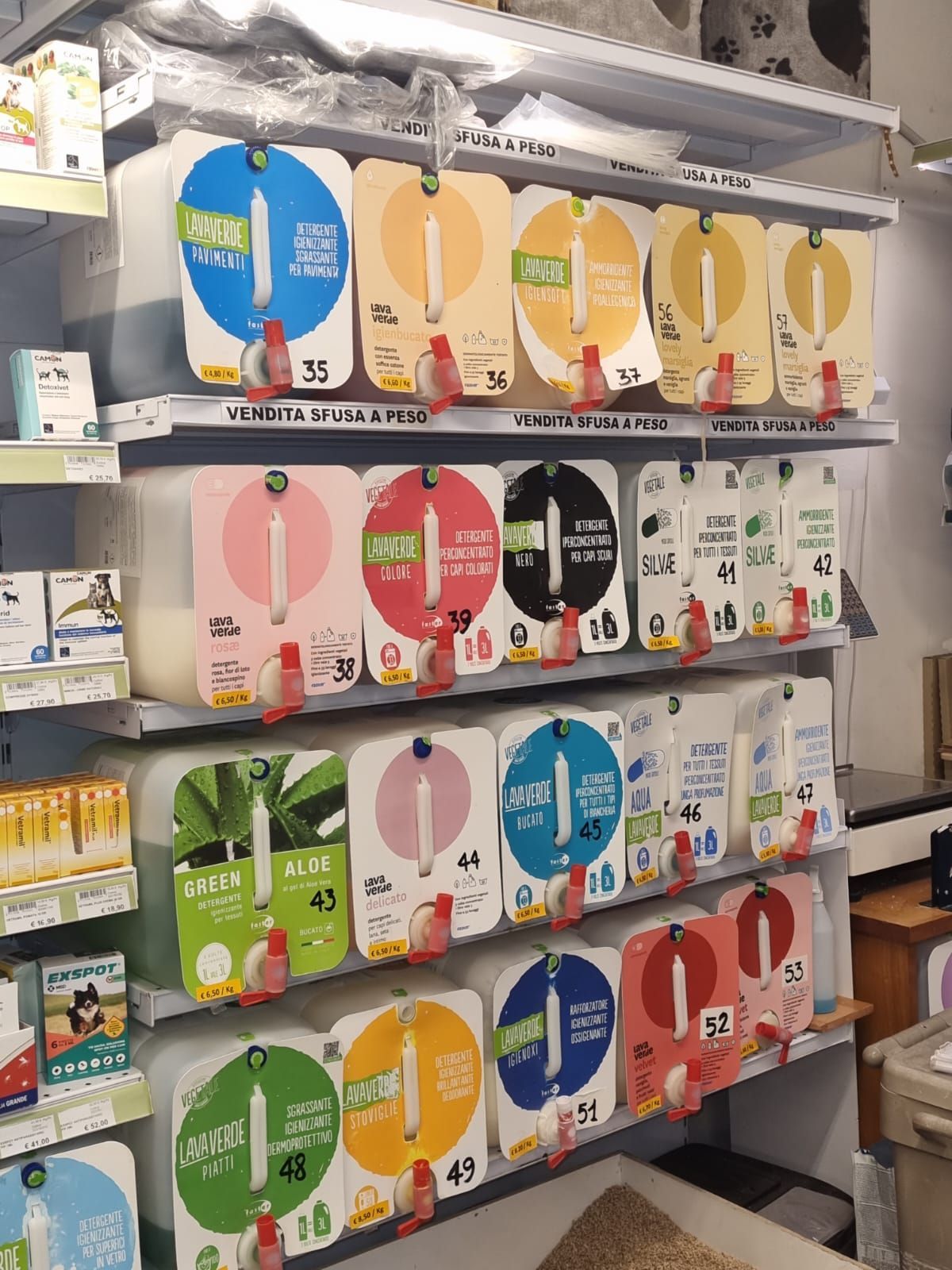 Proponiamo anche la vendita di alimenti sfusi per cani e gatti, detersivi per la casa e il bucato alla spina, oltre a lettiere biodegradabili e compostabili per gatti. Offriamo inoltre l'incisione personalizzata delle medagliette e la nostra tessera fedeltà, per premiare la tua scelta sostenibile.